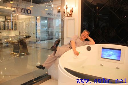 华美嘉按摩浴缸备受来宾青睐,不禁合影留念