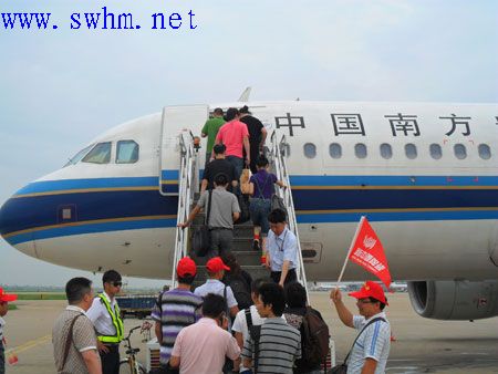 7月10日到11日, “欢乐中国”杭州站100余名业主仅用1个多小时飞抵佛山,开始了为期2天的团购之旅,这个豪华的“一站式超值购物之旅”,在当今物价高攀不下的消费环境中格外暖人心肺,10日中午,满载购物与旅游的杭州100余名业主飞抵佛山,一下飞机就被媒体紧紧包围,闪光灯一时打个不停,一时间满载喜悦与兴奋的杭州业主成了媒体聚焦的目标,浙江经济电台、《钱江晚报》等省内外主流媒体记者随团采访。“乘新中源专机,佛山买陶瓷”是新中源陶瓷考虑到杭州与佛山之间超过10多个小时的火车旅程后,所选择的最为省时便捷的方案。最大限度地省去杭州业主在旅途中的劳顿。自6月中旬包机团购一经公布,不断有消费者打进电话报名参加。据介绍,本次“包机五星级团购之旅”,历时2天,吸引了近百余名杭州准业主参加,他们不仅飞机往返,以最低的价格买到瓷砖,还能够饱览佛山的南风古灶、西樵山,更享受包括五星级宾馆住宿、五星级酒店就餐、五星级建陶展厅实地考察选购等五星级待遇。
