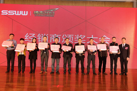 “人能尽其才则百事兴”,好的业绩整体离不开若干构成整体的优秀个体。2012年,浪鲸人克艰奋难,同心戮力,取得了值得骄傲的成绩,涌现出了一批团结协作、敬业奉献、作风优良的先进单位和优秀员工。为了树立典型、表彰先进,推动和促进浪鲸事业的更好发展,经过公司领导研究决定,对优秀经销商分别授予最具潜力奖、飞跃进步奖、忠诚奖、特别荣誉奖,以及对地县级排行前10经销商和全国销售前10经销商进行了表彰。同时,设经销商论坛让优秀的经销商与全国经销商分享成功,进行经验交流。