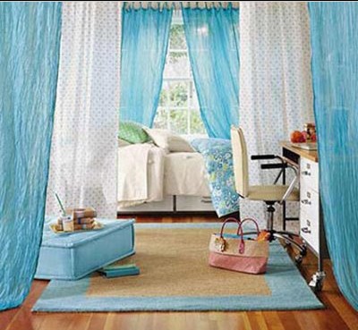 家庭装饰中,窗帘、卧具等都属于软装饰,软装饰更能体现主人的生活情趣,也更个性化。家庭中或温馨浪漫,或简约朴实,大多是通过软装饰来展示的。一般情况下,为了和谐统一,所有的房间都选择统一的窗帘。这对于一般只有一套单元房的家庭来说,这样的选择是无可非议的,但对许多有整幢楼的家庭来说,这样的选择就显得过于呆板。