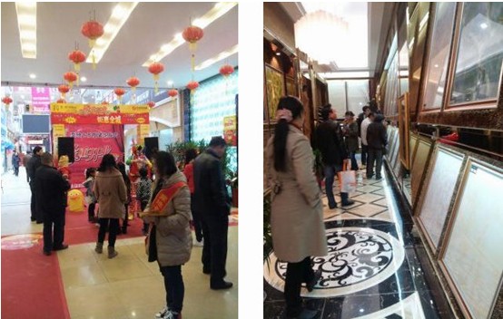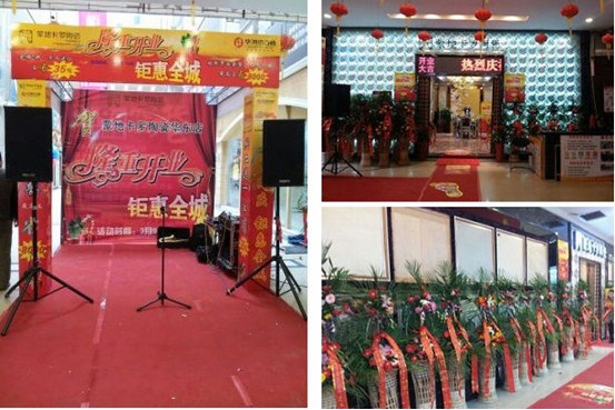 为了能在十大品牌中突显而出,苏州蒙地卡罗华东店更是选择在这一天进行隆重开业。开业当天,蒙地卡罗华东店门前鲜花盛开,几十个花蓝在精品店前后两门一字排开,店里造型可爱的地贴、特惠砖贴、吊旗等让开业充满了喜庆的气氛。除此之外,为了特显蒙地卡罗品牌的奢华风格,苏州蒙地卡罗的何总更特意请来了萨克斯表演。萨克斯手陶醉地吹出优雅的音乐,吸引着消费者的注目、驻足。消费者在观赏萨克斯的同时都留意到了蒙地卡罗开业钜惠的促销政策。多款优惠套餐空前劲省,最高可省8000元,还有抽奖、五项免费尊贵售后服务等优惠吸引了不少消费者购买。