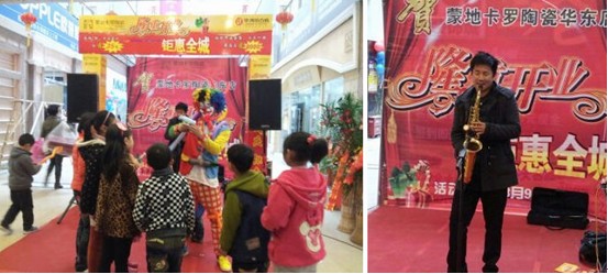 除了邀请了萨克斯表演之外,何总更是别出心裁的请来一个蒙地卡罗式的小丑表演。何总说:在蒙地卡罗赌城,就常有这样的小丑艺术在街头表演,很有趣,很开心,也很缤纷,我希望把这样的气氛带给我们苏州的百姓,让我们的店员、我们的顾客也感受到这份别样的蒙地卡罗式喜悦。欧式小丑的快乐表演让蒙地卡罗门前分外的开心、分外的热闹。带小朋友前往采购建材的顾客都被吸引到蒙地卡罗门前,小朋友更是围着可爱的小丑不愿离开。