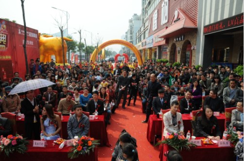 在主持人宣布大冶冠珠生活馆正式开业时,8位领导为象征喜庆的红绸带剪彩,并有威武雄壮的两头吉狮进行了精彩的采青表演,舞台上礼花齐放,璀璨耀眼。紧接着明星上台与观众互动,将现场气氛推向高潮,围观的人越来越多。6位阿娜多姿的高挑模特身着比基尼,展示畅销新品的魅力,演绎市场时尚潮流趋势。