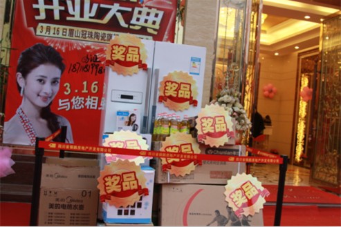 为了让眉山消费者享受冠珠大品牌高品质的形象,眉山冠珠旗舰店所有价格均为绝无仅有的开业最低价,厂方代表更为本次活动期间提供更低的让利,现场揭晓开业折上折优惠。凡下定满15000元的顾客,均可获得由厂方送出的足金金条一根,下定满5000元的顾客均可获得一次100%中奖的抽奖机会。活动现场摆满各种礼品,双开门冰箱、液晶电视机、微波炉、电饭煲、电磁炉等大奖应有尽有,全场奖品即抽即发奖。“那种兴奋和喜悦,不是一般语言能表达出来,参加这次活动让我感到买好砖、大品牌,真实惠。”一位消费者这样说道。