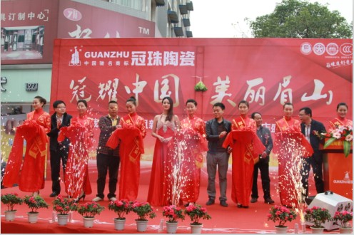 2013年3月16日,中国大文豪唐宋八大家之一苏东坡故乡——四川眉山迎来冠珠陶瓷旗舰店盛装开业。眉山凯利贸易有限公司董事长刘志凯先生、厂家代表孔智勇先生等多位领导出席了本次盛会。