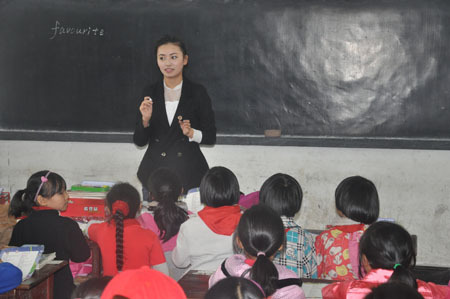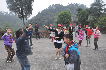 在这批爱心物品中,有一个红色的千纸鹤,这是一位业主小朋友特意让我们带来的,她叮嘱我们一定要帮她送给山区学校的小朋友;还有那几十本写着业主鼓励话语的新华字典,承载着爱心人士对他们的期盼和祝福。在马村乡石堰小学校区,新中源“温暖上学路”工作人员与世界小姐中国区佳丽一起和学生们玩起了老鹰捉小鸡、丢手娟等游戏,在学生的强烈请求下,工作人员还教学生一起跳骑马舞。世界小姐中国区佳丽张乐为孩子们上了一堂英语课,在课上她教会学生“hope”这个单词,她想让学生心中充满希望,以后能走向外面见识更广阔的世界。