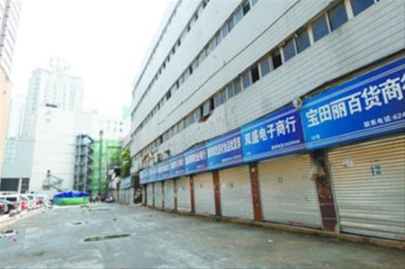 发生飞砖砸人事故的原因是小商品大世界商场没有施工围挡。