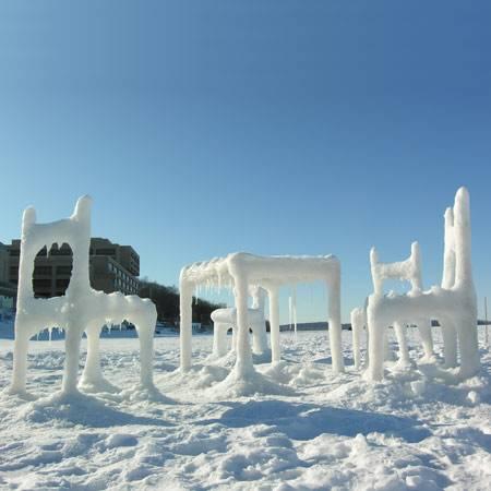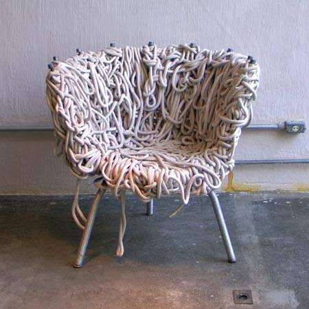 这是一群面料奇怪的椅子,是想宣传环保吗?创意是够,但是应该没有几个人想坐它们吧!