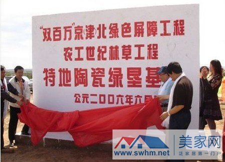 记者了解到,在双百万、百万森林等多项改善生态环境的项目中,总计已经有上百家企业投入到植树种草、防治沙化的事业中,以双百万为例,当初计划动员100万家机关、企事业单位和广大干部职工群众,在5年时间里,采取种树种草等多种措施,为内蒙古营造100万亩林(草)基地,共同构筑京(津)北绿色屏障,而在具体实践过程中,成果同样非常显著,不过能够像特地陶瓷这样拿出大手笔的企业,近几年里,都属少见。
