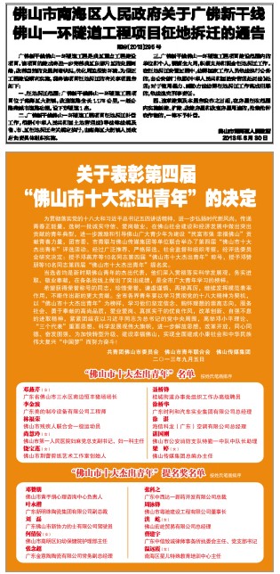 为贯彻落实党的十六届五中全会和全国人才工作会议精神,树立新时期青年一代的光辉形象,用杰出青年的精神和事迹教育、激励和引导广大青年健康成长,共青团佛山市委员会和佛山市青年联合会决定于今年7月至9月举办第三届“佛山市十大杰出青年”评选活动。经过提名推荐、调查初选、评委初评、公众投票、评审及公证、结果公示等六个阶段,新明珠副总裁叶永楷从众多候选人中脱颖而出,荣获“佛山市十大杰出青年提名奖 ”称号。