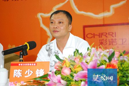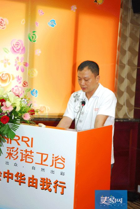 私下里与我们的陈总一起探讨对品牌的理解的时候,在观点上我们会有一些小小的不同,但我们有一个共识,那就是我们做彩诺这个品牌,首先我们要给彩诺找一颗饱满的种子,就是为他找一个很好的定位,值得庆幸的是,我们的定位是准确的,也得到了市场和在坐各位的认可,那进一步,我们要找一块肥沃的土壤,那就是媒体,因为肥沃的土壤才能长出参天大树,那剩下的,就是天气了。我本人很庆幸,自己进入了陶瓷卫浴这个行业,因为中国整体向前的经济环境为我们提供了一个良好的气候环境。尽管去年刮了点风,下了点雨,但是就像歌里面唱到的不经历风雨,怎么见彩虹。