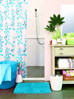 夏季浴室适宜采用夏季凉爽风格的浴室纺织品。洗澡时,清爽干净的浴帘绝对可以增加好心情,白色、蓝色、绿色的浴帘都能让人感到清凉,尽情享受酷爽夏日。