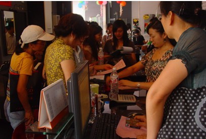 上午10点促销活动正式开始,短短几分钟内卫欧店内就已人潮涌动,店内的导购人员也立刻忙得不亦乐乎起来。