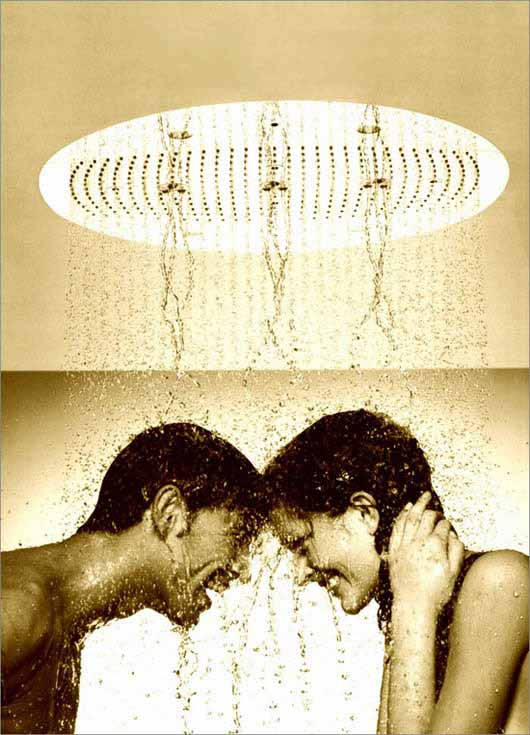 很多人都曾经有过在大雨中奔走的狂野经历,那是一种任雨水流泻拍打在身体上,释放自我的感觉。现在,不需要在户外,在华丽的浴室内,消费者就可以体验到这种狂野的浪漫了。头顶花洒与手持花洒的配合出现,美观而且很适用。
