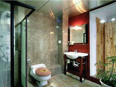 洁和明快就可以了.实则不然,对于那些追求更高生活情趣的人们,早已经把浴室里装扮得"色眯眯"的了.你看,无论是妖娆的红与绿,还是庄重的棕与黄,以及其他各种不同而各具情趣的"色",都把这个原本传统观念里素雅的空间,打造得"色""情"盎然.色,就这样改变了传统,提升了生活的质量.这样的"色"你敢近吗?