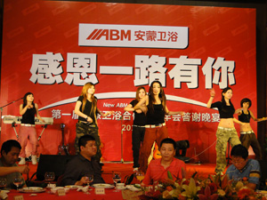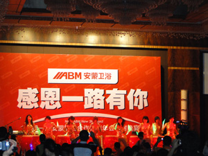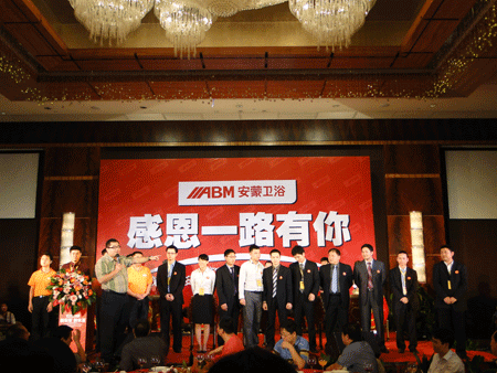 3月5日上午8时整,2010首届安蒙卫浴合作伙伴年会在“新安蒙 新水准”精彩的企业宣传片中正式拉开帷幕。会上,安蒙卫浴总经理安晖先生、研发中心总监唐小平、南北区销售总监等公司管理层分别作了主题报告,从企业发展、市场营销策略、产品创新研发等方面与合作伙伴一起畅谈2010发展蓝图。