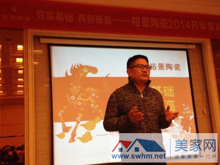 当天上午,新中源建材第一销售中心营销总经理杨杰对开年动员大会做了会议致辞,杨总表示裕景陶瓷2014年首要重点就是要紧抓新网点开拓,做好老客户的后期维护工作;其次在原有的优势销售渠道基础上,进一步拓宽品牌销售渠道,提升品牌销量,做好新一年裕景陶瓷的年度推广工作。他指出,只要裕景陶瓷人做到这重要的几点,2014年裕景陶瓷再上一个台阶是毫无疑问的!