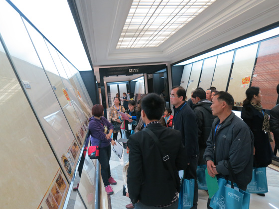 据了解,活动当天最受欢迎团友喜爱的产品要算香槟美域系列SW738008,其中80%的客户都选择此产品用于客厅。这让小编很惊讶,现场找到团友做了调查,有的是喜欢这款砖的花纹,像雪花一样,很漂亮;有的是老客户推荐新客户过来购买此产品的,已经有朋友铺贴了,质量得到了保证,还有的是冲着这个价钱来购买的,抄底价,铺个客厅成本不高,在装修的预算之内。