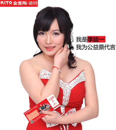 主题曲《爱的音符》主唱李娃一代言的公益票,爱心的象征;