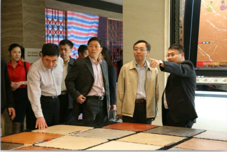 全国工商联党组副书记、副主席黄小祥一行首先参观了新明珠冠珠陶瓷总部展厅,他深深被新明珠陶瓷展厅设计的宏伟、壮观、新奇和新鲜所吸引。一边参观,一边不停向叶永楷常务副总裁和叶德林董事长了解相关产品情况。对于新明珠陶瓷的生产基地规模更是啧啧称叹,感叹于新明珠陶瓷集团发展速度如此之快。特别是看到冠珠的臻品·国玉系列时,他说∶“真想不到,这么潮流、高品质的产品是在佛山设计、生产的!”叶德林董事长自豪地说∶“这是我们自主研发的产品,源于石材,胜于石材。臻品·国玉系列引进最先进的技术,复制出取材于全世界价格最昂贵、天然木林纹理的新产品,以满足市场对这些极度稀缺资源的需求;又大大提升了产品的附加值并有效拉升市场的消费层次,还提升了企业的发展空间;产品得到高端消费者的认可与追捧,迅速占领同行制高点,从而成为了微晶石新品风向标。”
