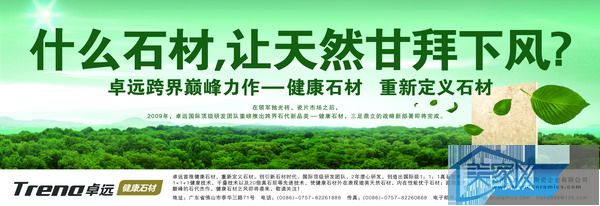 然而在稳健六年之后,卓远凭借务实进取的企业精神,通过品牌在产品、服务、设备、技术、研发等多个方面的原始积累,在领军抛光砖、瓷片市场之后,2009年的今天,踩准了建筑市场的产品趋势、消费者需求和发展脉搏,凭借与国际顶级研发团队共同研发,首创全球领先跨界巅峰力作“健康石材”,重新定义石材,全面进军“跨界石材”类产品的创新市场,卓远三足鼎立的战略新部署即将完成。