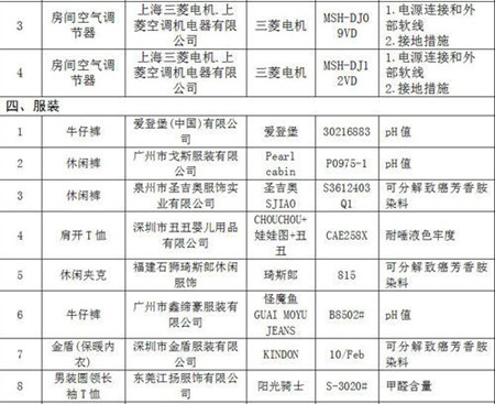 被列入首批缺陷商品名单的还有服装、空调和玩具、童车三类商品。