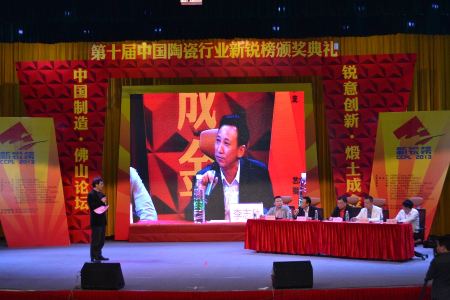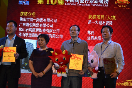 简一大理石瓷砖研发总监黄海发上台领奖(右二)