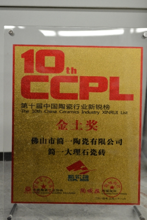 作为全新的建材品类,跨界命名的瓷砖新品类“大理石瓷砖”因其“拥有大理石的逼真效果,没有大理石的天然缺陷”,受到越来越多消费者的喜爱。2014年三月,简一大理石瓷砖频频传来捷报,由国家统计局中国行业企业信息发布中心颁发的“2013年度全国同类产品销售量、销售额、市场占有率第一名”三冠王奖牌以及中国陶瓷行业奥斯卡“第十届中国陶瓷行业新锐榜颁奖典礼”最高奖项“金土奖”均被简一大理石瓷砖包揽,简一大理石瓷砖同时也获拿下了新锐榜“年度优秀展厅”、“年度优秀产品”、“年度人物”三奖项,真正成为本届新锐榜的大满贯得主。