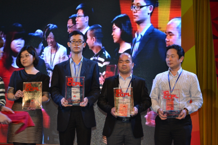简一大理石瓷砖荣获金土奖 简一副总经理杨君之上台领奖 (右二)