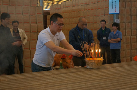 云浮新钻石瓷砖董事长潘秉然为新窑祈福
