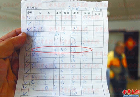 说完,王先生拿出购买装饰材料时商家列的清单,只见两张纸上密密麻麻写着18种名称,而且字迹潦草,很多都无法辨认。其中一张纸上,“压条”单位一栏写着“米”,“即使写着‘根’,我都买贵了,当时根本就意识不到这是一个陷阱!”