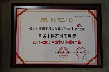 4月12日下午,由国际建筑装饰室内设计协会、中国国际环境艺术行业协会、珠江时报联合主办,泛家居第一门户美家网承办的主题为“趋势”的2014中国家居年会暨首届中国家居潮流榜发布会在佛山绿岛国际营销中心举行。典美陶瓷凭借强大的创新能力和优秀品质赢得“中国木纹砖潮流产品”大奖。