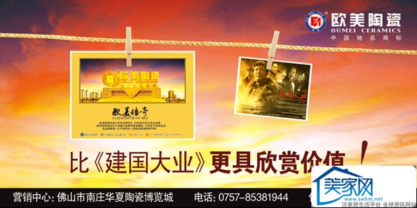 为庆祝建国60周年,各行各业费尽心思策划各式各样的事件为祖国献礼。近期,“星光闪耀”的《建国大业》无疑是献礼影片中最受瞩目的一部。单是片中172位明星的“超豪华阵容”就足以吸引无数观众的眼球。《建国大业》自9月16日上映后票房一路飙升,截至10月8日,全国票房已冲破4亿元,打破了《非诚勿扰》3.4亿元的纪录,成为目前票房最高的国产片。陶瓷行业借60周年华诞暨“第14届中国(佛山)国际陶瓷博览交易会”也忙得不亦乐乎。中国驰名品牌——欧美陶瓷乘着《建国大业》的旋风,为祖国为陶交会上演了一场比《建国大业》更具欣赏价值的巅峰耀世传奇,且随我们的镜头一同感受《欧美传奇》卖座的几点之最。