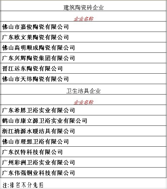 附件:中国建筑卫生陶瓷行业第二批诚信企业名单