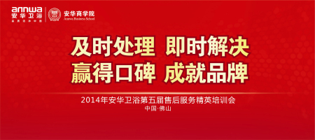 为进一步打造安华卫浴终端团队的售后服务能力,使终端拥有一支技术水平高、执行力强的服务团队,安华卫浴将于5月23日在佛山市高明安华陶瓷洁具有限公司召开第五届售后服务精英培训会,本届培训会为期3天,会议主题是“及时处理、即时解决、赢得口碑、成就品牌”。作为安华卫浴一年一度的盛会,届时将会有安华卫浴的高层领导、售后服务部门的同事和来自全国各地的安华卫浴精英们出席参加。