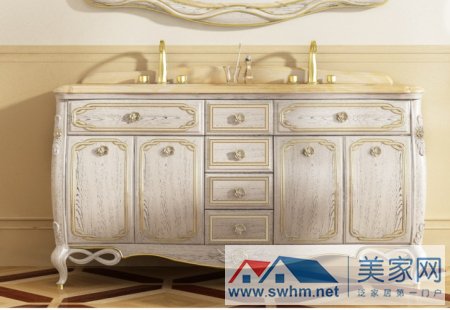 迷迭香系列浴室柜的迷人之处在于造型、纹路、雕饰和色调细腻高贵,耐人寻味处透露亘古而久远的芬芳,散发着优雅的法式浪漫气息。