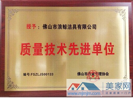 6月9日,浪鲸卫浴凭借自身的实力获得由佛山市质量管理协会颁发的“质量技术先进单位”的殊荣!