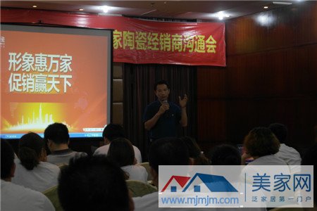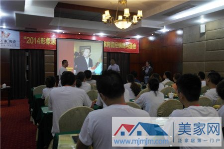 在分享河北永年、黑龙江哈尔滨、陕西宝鸡惠万家陶瓷营销中心在“超强幸福惠”活动中的硕硕战果之后,会议进入经销商分享阶段。“这些功劳大部分都要归新明珠!”哈尔滨惠万家陶瓷营销中心张鹏经理一上台就激动地说。据了解,在2014年5月1日的明星签售哈尔滨站上,哈尔滨惠万家陶瓷营销中心一举收获800个订单,创造了哈尔滨陶瓷界的销售奇迹。对此,张经理也分享了该活动中运用的小推车营销渠道,还重点介绍了其在团队建设与人才储备中的心得,10分钟内引来5次热烈掌声,现场十分热闹。共同上台分享的员工也激动地为大家阐述内心的想法:“老板赚钱我们才能赚钱,我们要跟老板站在一起!”