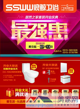 浪鲸卫浴从厂部优化组织、强化管理,低耗高效运作,到终端店面销售时刻为消费者提供物超所值的产品和服务为己任,参与此次活动更可享受满即送的免费送货安装服务一次!