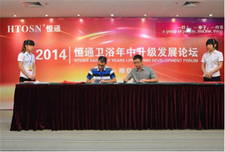 2014年6月25日,为期3天的2014年恒通卫浴年中升级发展论坛在中国水暖基地——南安隆重召开。来自全国各地的总经销商及恒通卫浴的高层领导出席论坛,恒通卫浴有限公司总经理颜和钦先生、营销总监吴治就先生、生产副总经理史友中先生先后上台致辞,向全国的经销商展示了恒通卫浴一系列的升级发展成果和未来的营销和生产规划,展现了恒通卫浴从硬件到软件进行全方位升级发展的决心和成就中国卫浴第一品牌的雄心。