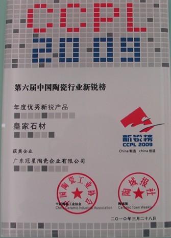 2010年3月28日下午,被誉为陶瓷行业“奥斯卡”的一中国陶瓷行业新锐榜,在佛山新闻中心举行了“第八届中国陶瓷行业新锐榜颁奖典礼”。众多的建材行业领袖、业界精英聚集一堂。罗马利奥陶瓷受邀参加本次颁奖典礼,标志着罗马利奥巅峰成就的皇家石材喜获“年度优秀新锐产品”奖。