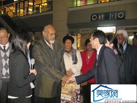 在周军的陪同讲解下,纳塔佩总理一行兴致勃勃地参观了个性、米洛西、浪鲸、三英、益高等一批极具个性与特色的入驻品牌的展厅。在米洛西展厅,纳塔佩总理对一款大理石复合砖产品赞赏有加,表示“瓷砖+石材”的创意值得推广与借鉴,强调该款产品充分发挥了天然石材的优势,具有美仑美奂的华贵质感;在个性瓷砖展厅,色彩斑斓的“面包砖”引起了纳塔佩总理的注意,“砖体颜色多变,而且每一块都不同”,纳塔佩总理似乎对“窑变”技术也深有研究,指着“面包砖”解释说;在海意展厅,该企业的总经理王海燕亲自充当茶艺师,为纳塔佩总理一行奉上一道功夫茶,品尝着极具中国特色的功夫茶,欣赏着散发出浓郁东方情调的海意艺术背景墙产品,瓦努阿图的贵宾喜悦之情溢于言表。