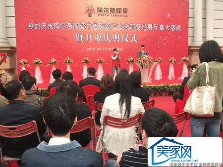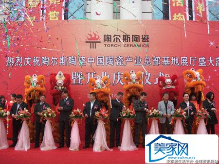 在开业典礼上,中国陶瓷工业协会秘书长甫永祥,中国建筑卫生陶瓷协会副会长、秘书长缪斌,陶尔斯陶瓷总裁祁慧军发表了鼓舞人心的讲话。开业典礼礼炮轰鸣,醒狮助兴,代表们兴致勃勃地出席了典礼以后又参观了展厅并共进午宴。