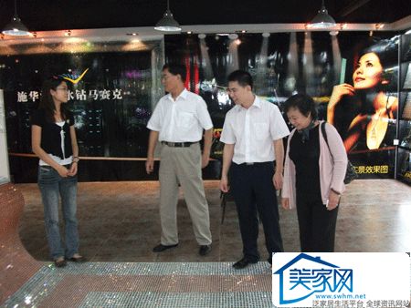 2009年10月21日上午10:30分左右,在中国马赛克城总经理杨瑞鸿的迎领下,中国陶瓷工业协会副理事长何天雄、中国陶瓷工业协会副理事长傅维杰女士和中国陶瓷工业协会副秘书长侯文全亲临中国马赛克城,依次参观了歌莉娅、小汉玉、赛多宝、日月贝壳、海敏家居、晨日矿业、富利达、艺典、施华洛仕、海弟、维亚士、玫瑰等马赛克展厅,在对马赛克装饰效果赞叹不已的同时,何天雄、傅维杰副理事长和侯文全副秘书长对中国马赛克城拥有这么齐全的马赛克材质、拥有这么大面积的展厅、这么多马赛克企业的加盟赞誉有加,并现场做了指导与鼓励。最后,领导一行来到中国马赛克城媒体俱乐部会议室,针对本次陶瓷节中国马赛克城展厅的规模、布置、产品、经营等情况,相互进行了简短的交流。
