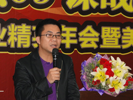 【陈华杰】:各位下午好大家应该知道我,很多老朋友,有些没见的,今天也见到了。所以王健还是非常感谢你。刚才张老讲了一番话,我觉得非常有感触,我感谢张老。我觉得我们各位很辛苦,年头到年尾忙很累,我在陶瓷干了四年多,06年1月1号4000万,到现在干了3个亿,这中间我收获了很多快乐,收获了我想要的东西。我没正式跟大家讲我离开的原因,所以我在这里说一声对不起,我是偷偷地离开。我在创业的时候有很多变数,签订了合同,又有了变动。在11月份的时候,我们谈了两次,第三次敲定了下来。我跟何总谈的时候。我在前几年开的年会,整个品牌的运作,包括10年促销怎么开展。有新的东西,因为思想的实质,把田种好,把心收好。如果你没有心的话,田也没有办法种好,所以想做,一定要把东西做好。所以我们10年很多东西要去想,想也是相互的,跟我们的客户,经销商的朋友,第二个提出了一点,我要建立一个媒体的联盟机制。因为我现在觉得媒体这一块,我上来以后,我觉得媒体的联盟重新建立起来,品牌的机制放到第一位。刚才谈了好几个观念非常认可,接下来我想讲讲健康的话题。09年,我虽然比较年轻,但是健康压力还是很大,经常失眠,三更半夜睡不着。我觉得有一个好的东西打高尔夫球,我估计这里很少人打。现在的高尔夫球俱乐部成立了,我打得很好,打得非常成功。我觉得10年,是我学好高尔夫打好高尔夫的一年,既能锻炼身体,也能跟营销很好的结合。你们过去打高尔夫球,你们报名了可以免费的。