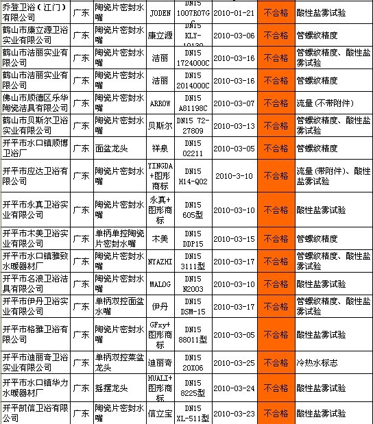 国家质检总局9月2日公布的产品质量国家监督专项抽查结果显示,片密封水嘴合格率为67.2%,83批次产品不合格被曝光,其中42批次为广东制造,涉及浪鲸、惠达、乔登、雅鼎、人水、OXO等品牌。