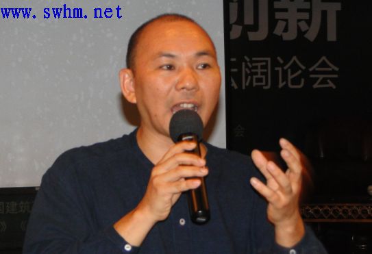 【冯羽】:各位大家好,刚才我们各位设计师演讲的时间很长,所以我希望我是最后一个演讲嘉宾,每一位嘉宾多一点点耐心,可能只有一点点的演讲会让大家比较兴奋。刚才王河老师,在讲绿色设计的时候,我很有感触,我觉得几为专家将的非常专业,现在我就讲一点我们本土的绿色设计到底走向何方。我们要从哪里来要到那里去。我们的世界正处于完全半崩溃的状态。比如说哥本哈根气侯论坛,电影2010,这些符号带给我们的概念是危机感。我们已经是迫不及待了,没有退路了,进入了世界大同的状况了,分辨不清世界特色的时代。我们作为本土的设计师我们怎么样去给全球对话,我觉得是我们在座的设计师要思考的很重要的问题。否则的话,我觉得未来我们到底有什么东西可以拿到世界上去对话。我结合一点比较小的案例来做对比。我作为一个设计界的边缘人物,对于怎么样去保护本土文化的设计,我今天展示的是“天喜东方会谈”的案例。大家可能作为设计师,尤其是广东的设计师,一提到汕头,可能会觉得比较敏感。这个案例的老板是从澳洲回来的人,他是这家会所的股东,他找到了我,说想请我做设计。但是等他介绍完了以后我一点都不感兴趣。可是他又非常的诚恳,说你可以完全自由的发挥,你可以坚持你学术一些梦想,这样后来我才去的。因此他们的名字就天喜东方会所,天喜,所以不管的是建筑设计从外观一直到全国的宣传,基本上在全国都是一片红。他们作为甲方提了几点要求,你必须作为东方的人,而且因为我们是天喜,天子都为我们喜悦,所以你也要表达欢喜的感觉,还要立足于东方的文化。