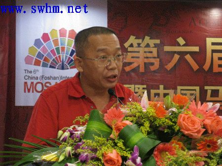 另外一个,我不是做马赛克经营的,只是通过一个了解,应该是国内的技术,我昨天也参加了一下马赛克城,国内生活的技术水平,实际上是非常高的。刚才在简建强交谈的时候,我们的技术实际上非常好的跟国外的差距是附加值很高,实际上就是文化的附加值。很简单,我们现在的马赛克发展到这种程度,我们把它做成一个极高端的市场,哪怕不跟国外去竞争,我们在国内的高端产生,也需要比较有档次或者有水平的马赛克壁画的作品。当然这个说起来很容易,实践起来非常的难,我倒觉得我们在座的马赛克诸位的大企业,适当的时候也去开发一下城市外墙建筑和内墙建筑创作性的马赛克壁画。什么叫马赛克壁画,跟一个大楼谈好,这个壁画不是批量生产,只是在一个公共空间所存在的作品,这样就直接可以把这个产品提高到一个很高的附加值。或者根据什样需求的人设置什么样档次的,能够完成的细节,我觉得尤其是佛山,如果从佛教传统佛教壁画,当他出现了一个新的面貌的时候,可以结合起来,恐怕也是一条可选择的路。基本上就是这个情况谢谢大家。