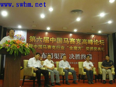 【刘智勇】:中国马赛克行业“金魔方”最佳市场开拓奖,获奖的是:全国各地几十家专卖店建设,四会市伟琪建设有限公司,北京、武汉、佛山市顺德区塞德装饰材料有限公司。