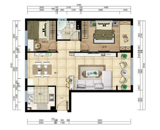 案例二:北京朝阳万达广场——二居室——94平米——现代简约